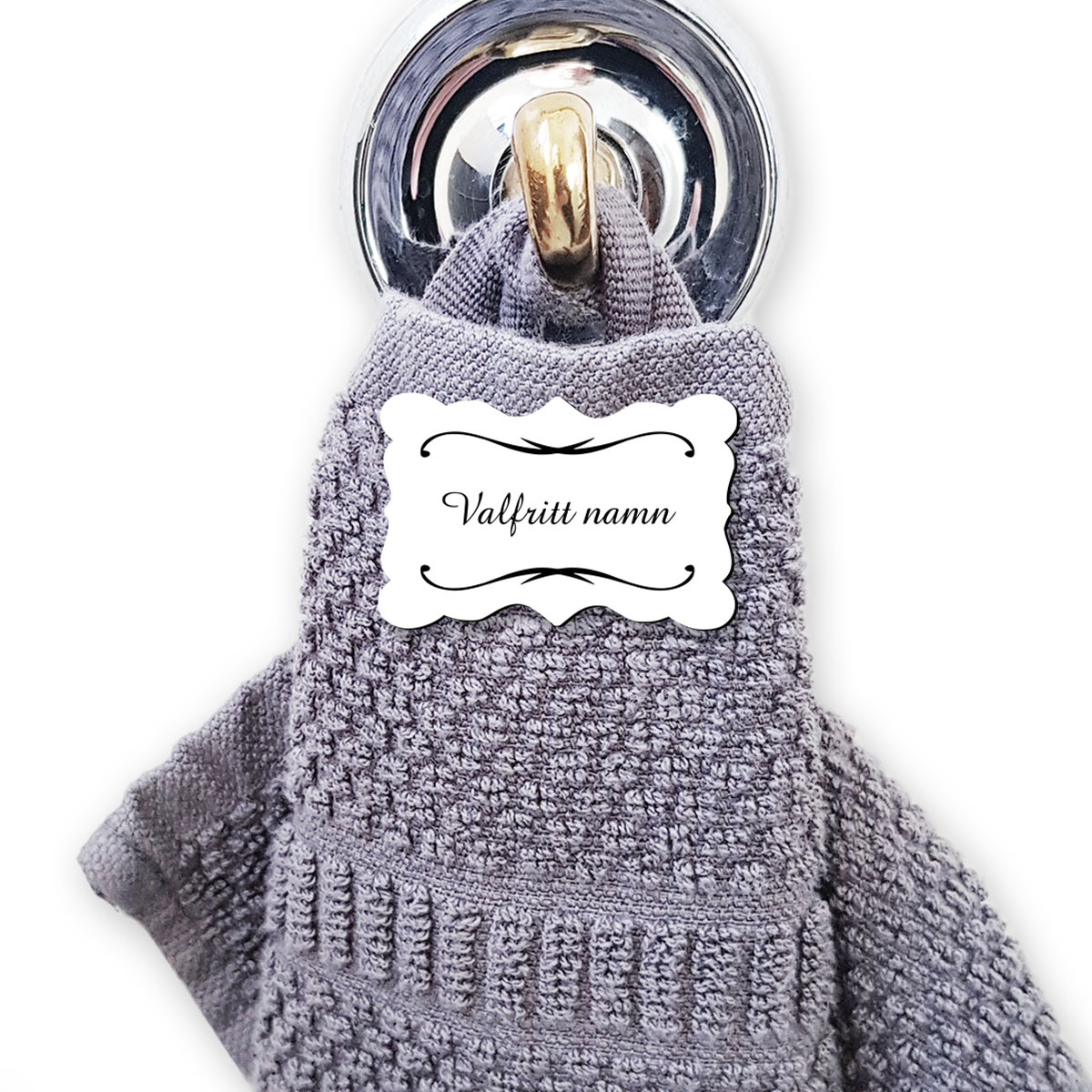 Orden ”gäster” eller ”vänner” kan graveras in på skyltarna som ska märka ut gästhandduken i familjens badrum.